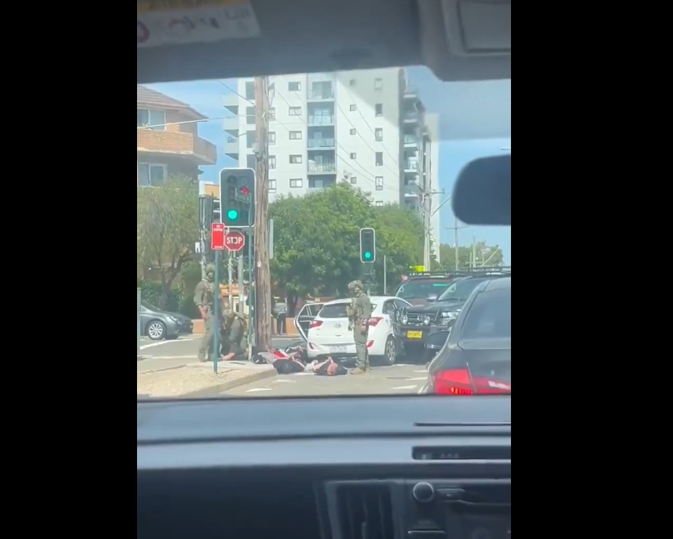 Tactical operations officers in Sydney’s Liverpool neighborhood ram cars and intercept vehicles to stop a “violent act that was possibly