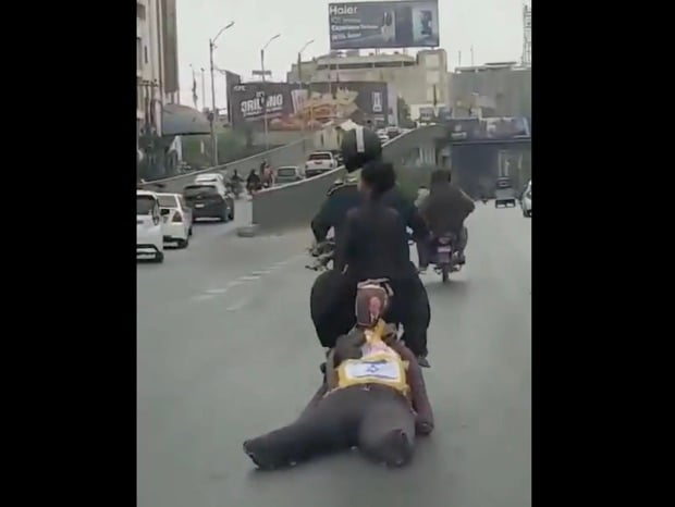 An effigy of Israeli Prime Minister Benjamin Netanyahu was dragged behind a motorcycle – a stark display of hostility toward