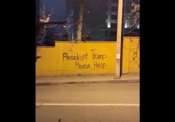 An Iranian protester was filmed spray-painting the message “President Trump, please help” on a wall, underscoring the desperation of Iranians