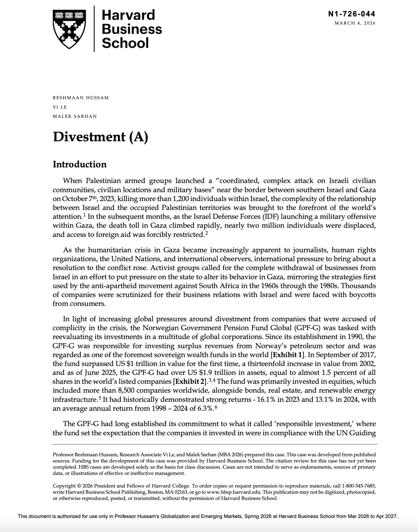 The case version that was obtained by the Free Beacon is titled Divestment (A), suggesting that a part (B) may be next.